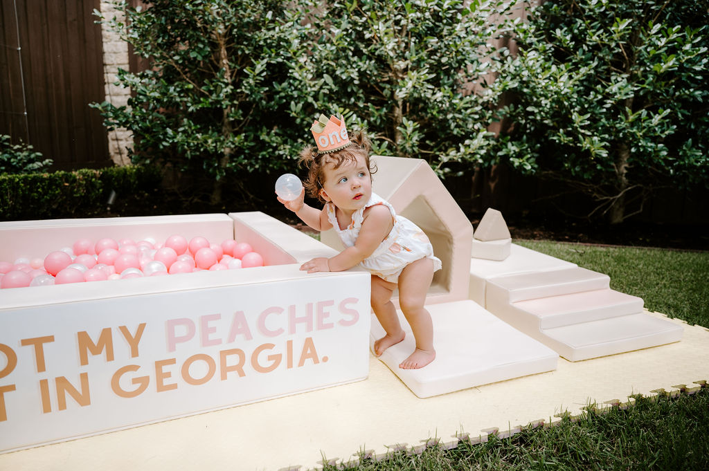 Our little girl is officially one sweet peach! That whole saying that, “the days are long, but the years are short” could not be more accurate. This past week we celebrated Tati’s one sweet peach birthday with close friends and family at my parents house, and this celebration is one that I’ll never forget.